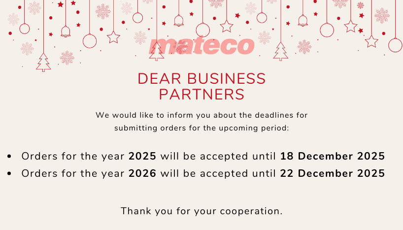 We would like to inform all our customers and business partners about the order submission deadlines for the upcoming periods. To ensure efficient planning of production and delivery capacities, please take note of the following cutoff dates: