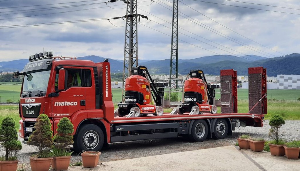 Dôležitou súčasťou služieb prenájmu, predaja a servisu pracovných plošín a manipulačnej techniky našej spoločnosti mateco Slovakia je vlastná doprava zo všetkých našich pobočiek v Bratislave, Nitre, Zvolene, Žiline a v  Prešove. Vďaka tomu máme lepšie možnosti flexibility a lepšej reakcie na dovoz a odvoz strojov pre zákazníkov. Našim zákazníkom tak odpadávajú starosti s logistikou pracovných strojov, o všetko sa postaráme my. Dopravu pracovných strojov ponúkame v rámci celej Slovenskej republiky.